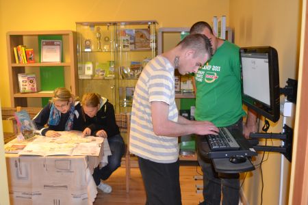 Uczestnictwo schroniska w projekcie pozwoliło na zorganizowanie profesjonalnego Punktu Informacji Turystycznej wyposażonego w meble wystawiennicze, sprzęt biurowy i cyfrowy (aparat fotograficzny, komputer z dostępem do internetu i informacji turystycznej). W holu schroniska zainstalowano infokiosk, dzięki któremu turyści nocujący w schronisku sami mogą sięgnąć po informację turystyczną dotyczącą regionu. Ostatnią atrakcją naszego punktu są audioprzewodniki, dzięki którym turyści mogą samodzielnie zwiedzać Sławków i jego atrakcje.