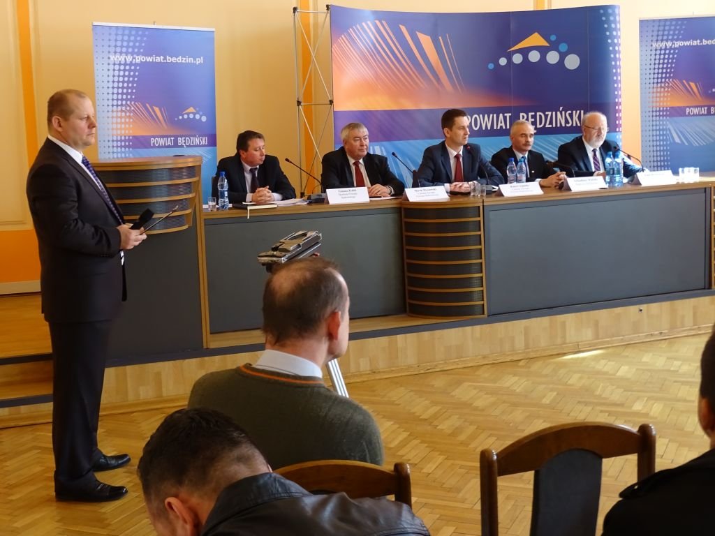 Otwierając konferencję Starosta Będziński Arkadiusz Watoła powiedział m.in.: „ Po zapoznaniu się z dokumentami, możemy dziś pokusić się o próbę podsumowania zarówno aktywów i pasywów minionej kadencji. Do tej pory sygnalizowaliśmy Państwu, że sytuacja finansowa Powiatu jest bardzo zła, teraz chcielibyśmy przedstawić konkretne liczy i fakty, żeby Państwo mogli się z nimi zapoznać i sami wyciągnąć wnioski”.