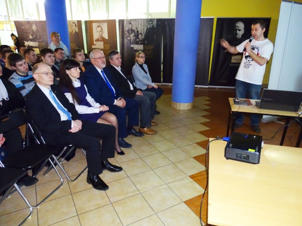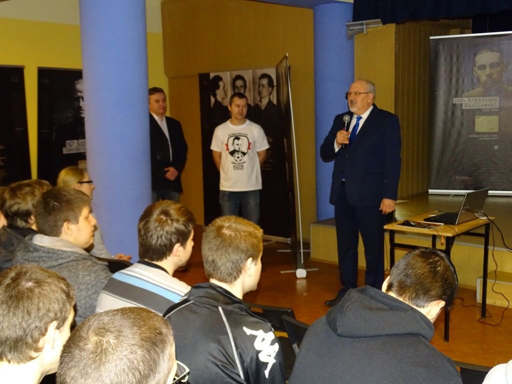 Tematykę wystawy przybliżył uczniom Pan Mariusz Solecki, pasjonat historii najnowszej, autor książek poświęconych Żołnierzom Wyklętym. Wykład połączony był z prezentacją multimedialną.