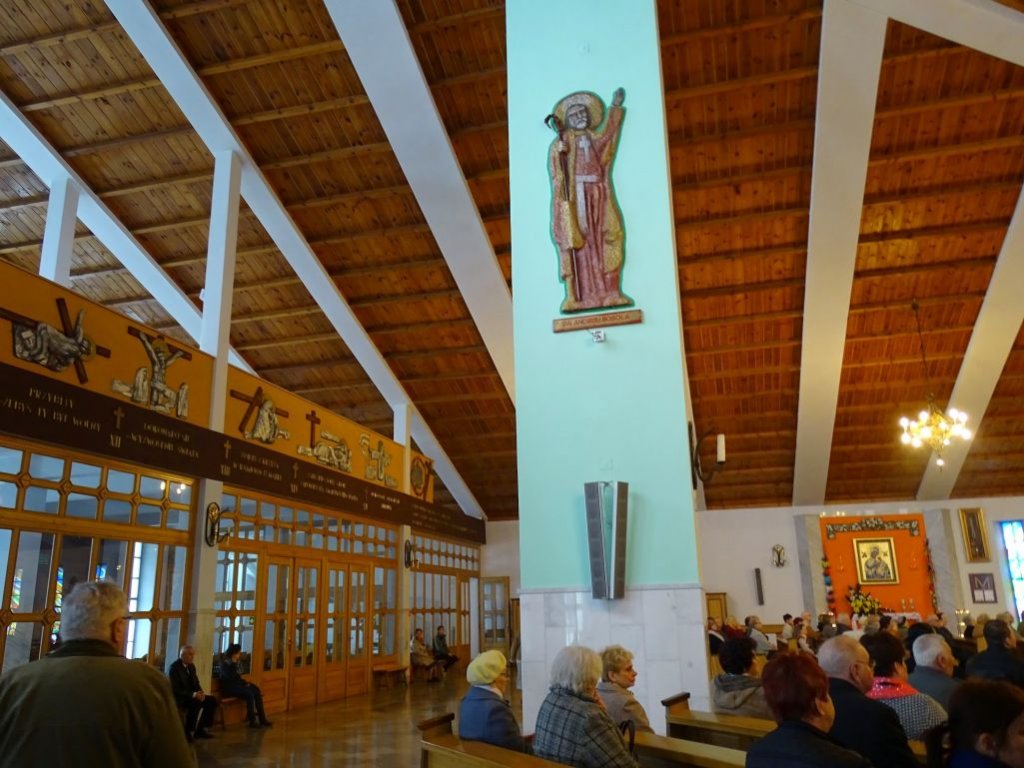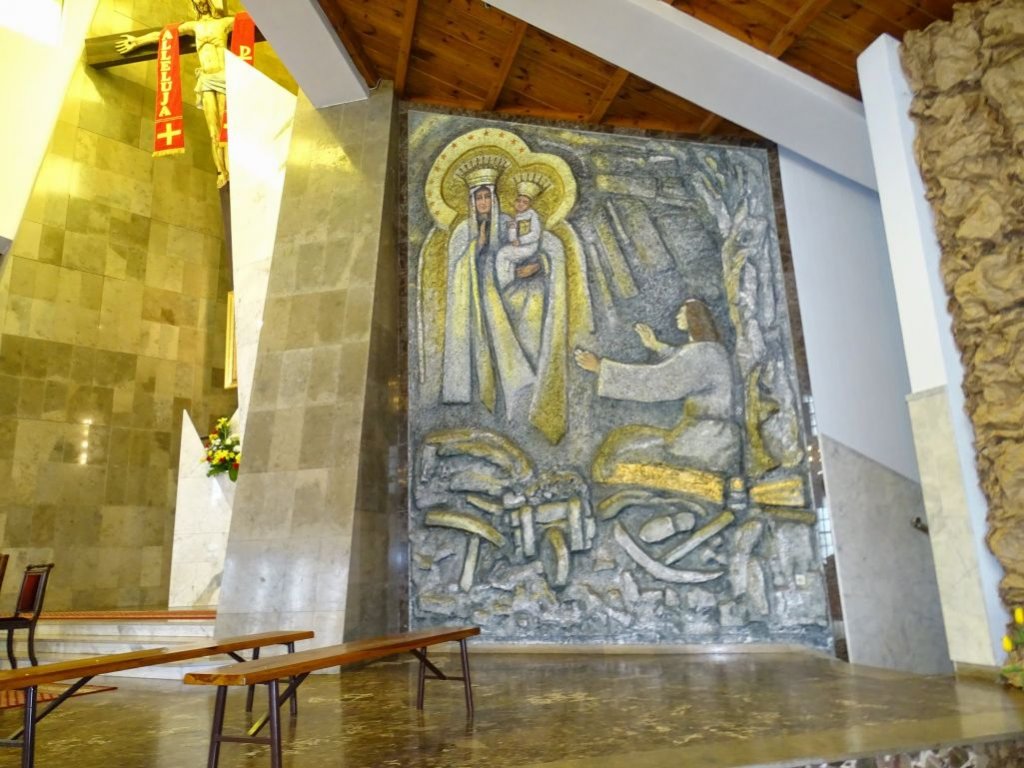 Przed wejściem do dolnego kościoła w 2003 roku stanęła na kopcu figura Matki Bożej z Lourdes, jest to miejsce refleksji, ciszy i chwili zadumy, zaś na froncie sanktuarium pod dzwonnicą znajduje się figura świętego Józefa Rzemieślnika.