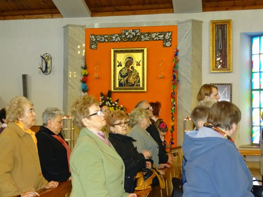 Przed wejściem do dolnej kaplicy znajduje się krzyż obrazujący Matkę Bożą Katyńską wraz z wypisanymi miejscami kaźni, zaś w środku dolnego kościoła znajduje się wspomniana wyżej Izba Pamięci. W środku wyeksponowano brzozowy krzyż z Matką Bożą Katyńską.