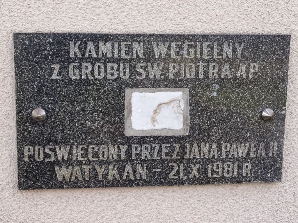 Dzięki staraniom ks. Gibały w murach górnej części kościoła został umieszczony kamień węgielny z grobu świętego Piotra w Rzymie ofiarowany przez papieża Jana Pawła II. 24 maja 1997 roku pierwszy ordynariusz diecezji sosnowieckiej ksiądz bp. Adam Śmigielski ustanowił będziński kościół Sanktuarium Polskiej Golgoty Wschodu.