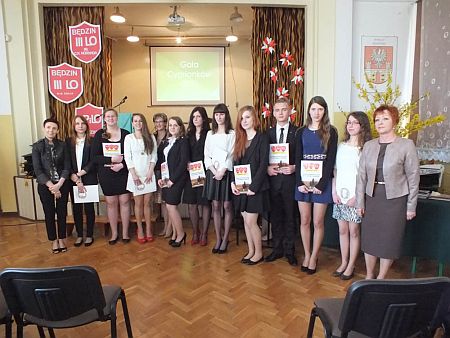 Na wstępie przedstawiciele wyższych uczelni ogłosili nazwiska absolwentów, którym przyznano preferencje przy podjęciu studiów: Magdalena Pasternak otrzymała Złoty Indeks Wyższej Szkoły Biznesu w Dąbrowie Górniczej, Denisa Kowalczyk uzyskała promesę na pierwszy semestr studiów w Wyższej Szkole Zarządzania Ochroną Pracy w Katowicach. Pozostałe wyróżnienia i nagrody w oficjalnej części uroczystości przedstawiła Dyrektor III LO, Pani Beata Polaniecka. Świadectwa ukończenia szkoły z wyróżnieniem otrzymało aż 10 uczniów: Członka Patryk, Janus Dominika, Kalus Weronika, Kołtunowska Kamila, Koprowska Beata, Pasternak Magdalena, Plech Magdalena, Szlęk Sara, Wójcik Natalia, Żukocińska Aleksandra.