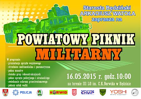 W dniu 16 maja 2015r. (sobota) na terenie III Liceum Ogólnokształcącego im. C. K. Norwida w Będzinie odbędzie się Powiatowy Piknik Militarny.