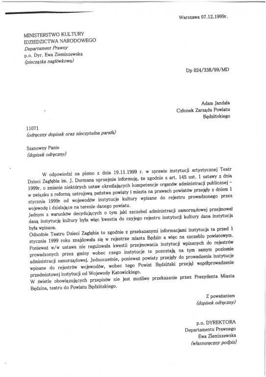 Prezentujemy kopie dwóch ważnych dokumentów dotyczących Teatru Dzieci Zagłębia im. Jana Dormana w Będzinie: