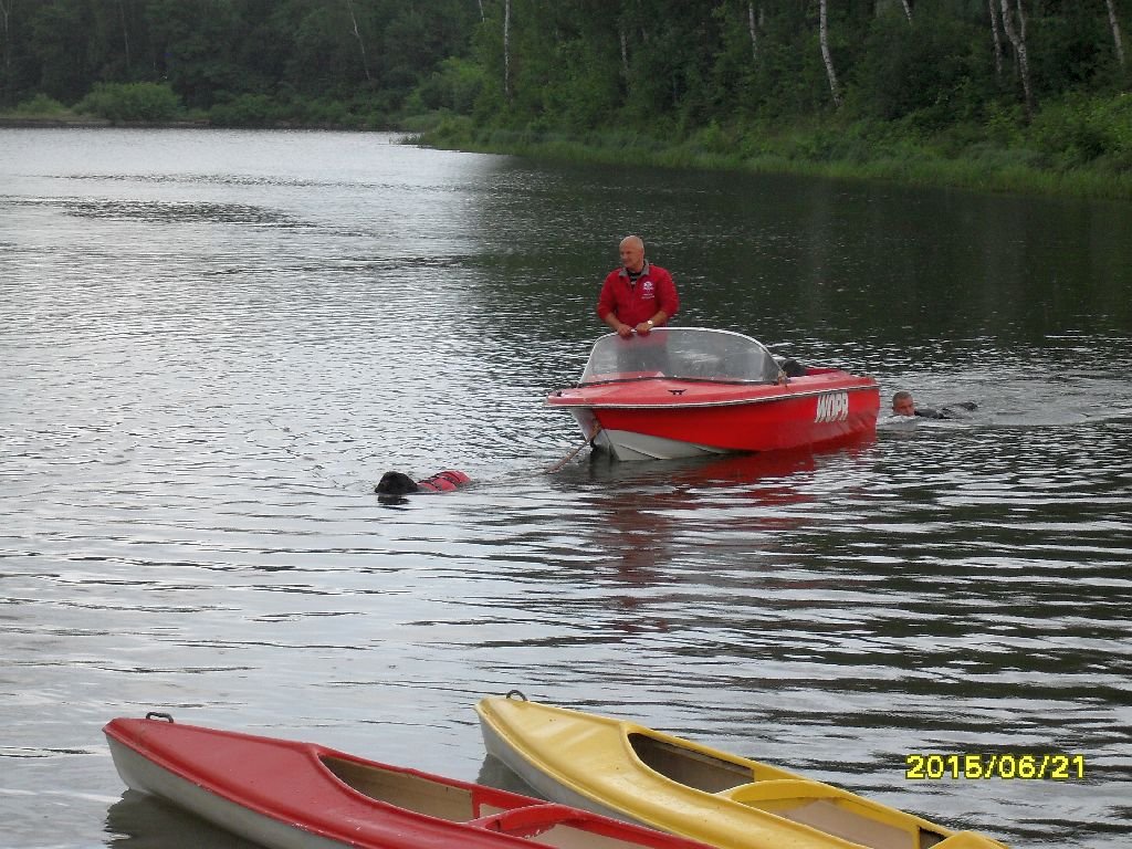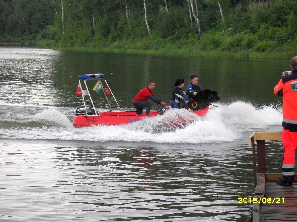 Radość z pozyskania nowego sprzętu spowodowała, że ratownikom pełniącym rolę pozorantów w wodzie nie przeszkadzał chłód i brzydka pogoda. Dużym zaangażowaniem w pokazy wykazały się też psy ratownicze.