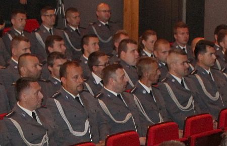 Zgodnie z tradycją funkcjonariuszom będzińskiej policji w dniu ich Święta zostały wręczone nominacje na wyższe stopnie służbowe. W tym roku przyznawał je nowo mianowany Komendant Powiatowy Policji podinsp. Adam Pilarek. Nowym zastępcą Komendanta Powiatowego Policji został mł. insp. Mariusz Huras.