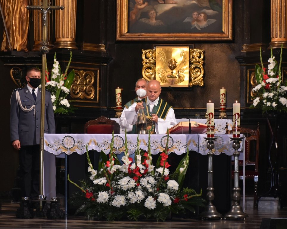 Uroczystość w asyście policyjnych sztandarów celebrował Duszpasterz Policji w Diecezji Sosnowieckiej ks. dr Mariusz Karaś oraz ks. kan. Andrzej Stępień. W imieniu Starosty Będzińskiego Sebastiana Szaleńca udział w uroczystości wzięła Agata Fazan – Sekretarz Powiatu. Posła na Sejm RP Rafała Adamczyka reprezentowała asystentka Paulina Wnęk. W imieniu Prezydenta Miasta Będzina Łukasza Komoniewskiego kwiaty złożyła Wiceprezydent Aneta Witkowska-Złocka, Miasto i Gminę Siewierz reprezentował Burmistrz Zdzisław Banaś. Obecni byli również: Zastępca Komendanta Wojewódzkiego w Katowicach insp. Dominik Łączyk, komendanci miejscy, emeryci policyjni, funkcjonariusze będzińskiego garnizonu wraz z Komendantem Arkadiuszem Więckiem oraz najbliższa rodzina zmarłego.