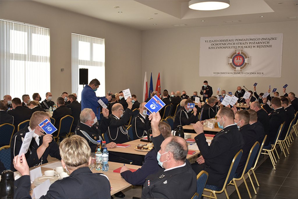 W sobotę 15 stycznia w Remizie Ochotniczej Straży Pożarnej w Wojkowicach Kościelnych odbył się VI Zjazd Oddziału Powiatowego Związku Ochotniczych Straży Pożarnych Rzeczpospolitej Polskiej w Będzinie. W zebraniu z ramienia Powiatu Będzińskiego udział wzięli Starosta Będziński Sebastian Szaleniec wraz z Wicestarostą Dariuszem Waluszczykiem.