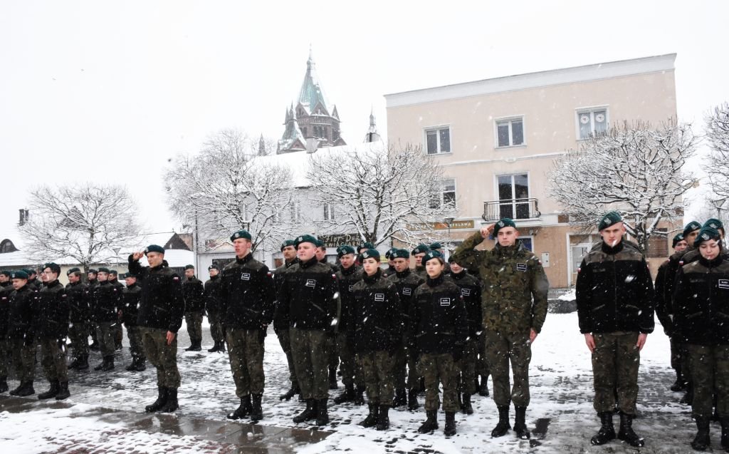 W piątek 1 kwietnia na Rynku im. Stefana Wyszyńskiego w Czeladzi odbyło się ślubowanie uczniów klas pierwszych o profilu mundurowym Zespołu Szkół Ogólnokształcących i Technicznych. Podczas uroczystości Starostę Będzińskiego Sebastiana Szaleńca reprezentowali Wicestarosta Będziński Dariusz Waluszczyk oraz Przewodniczący Rady Powiatu Jan Powałka. W uroczystości uczestniczyli również Burmistrz Miasta Czeladź Zbigniew Szaleniec wraz z Zastępcą ds. społecznych Beatą Zawiłą, oraz Wojskowy Komendant Uzupełnień w Będzinie ppkł Wojciech Bakalarz wraz z Zastępcą mjr Jackiem Łukasikiem.