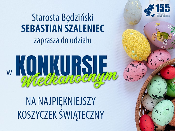 Z okazji nadchodzących Świąt Wielkanocnych Starosta Będziński Sebastian Szaleniec zaprasza wszystkich mieszkańców Powiatu, zarówno tych małych jak i tych dużych do wzięcia udziału w konkursie na najpiękniejszy koszyczek wielkanocny! Drogi Mieszkańcu, jeśli jesteś przekonany, że to właśnie Twój koszyczek jest tym najbardziej wyjątkowym w całym Powiecie to kliknij tutaj: https://www.facebook.com/100064514627349/posts/348465087313976/?d=n