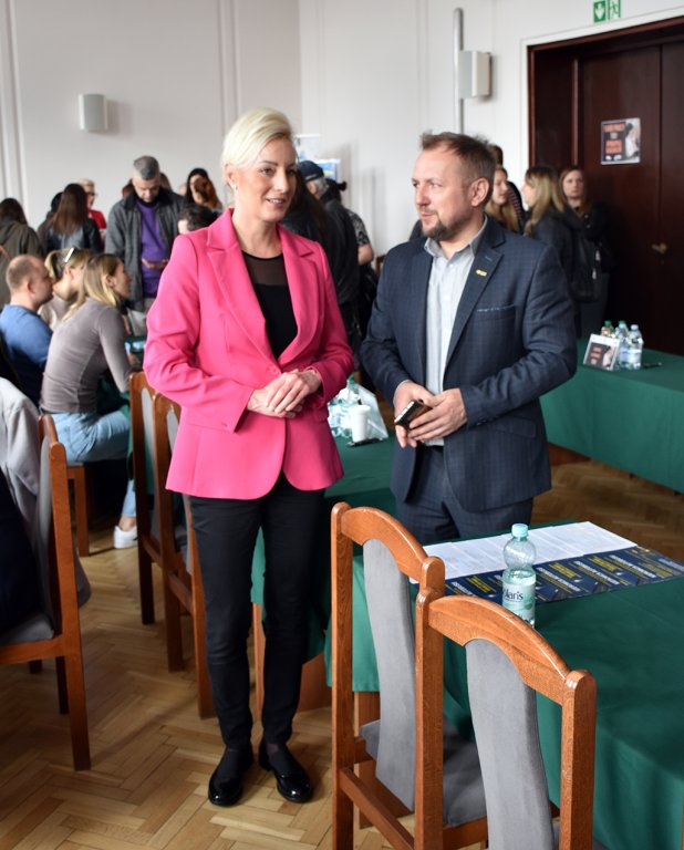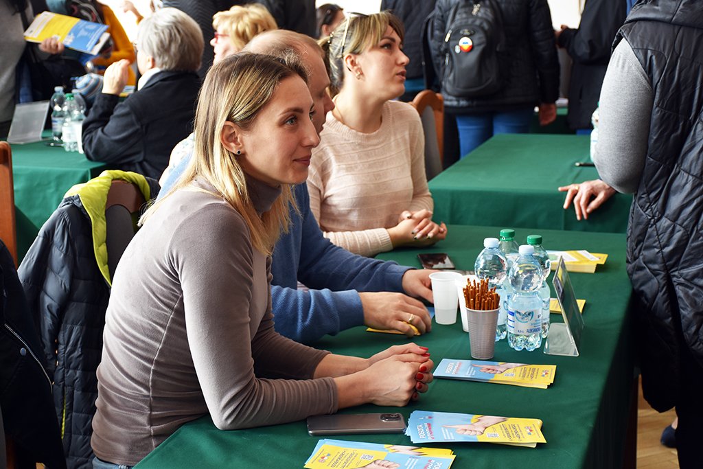 Dzisiaj w Sali Sesyjnej odbyły się polsko-ukraińskie Targi Pracy pn „Praca bez Granic”, w których uczestniczyli mieszkańcy powiatu i uchodźcy z Ukrainy. Wszystkie osoby zainteresowane znalezieniem zatrudnienia przywitał Starosta Będziński Sebastian Szaleniec wraz z Dyrektorem Powiatowego Urzędu Pracy Wojciechem Olesińskim. W wydarzeniu uczestniczyli: Przewodniczący Rady Powiatu Jan Powałka, Wicestarosta Dariusz Waluszczyk, Członek Zarządu Halina Mentel i Sekretarz Powiatu Agata Fazan. Na wszystkich uczestników czekały oferty pracy przygotowane zarówno w języku polskim jak i ukraińskim. Dostępna była również pomoc tłumacza. Można było skorzystać także z usług doradców zawodowych czy porad ekspertów.
