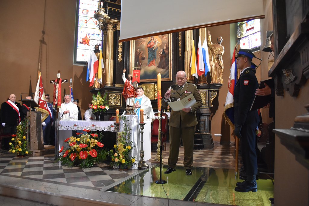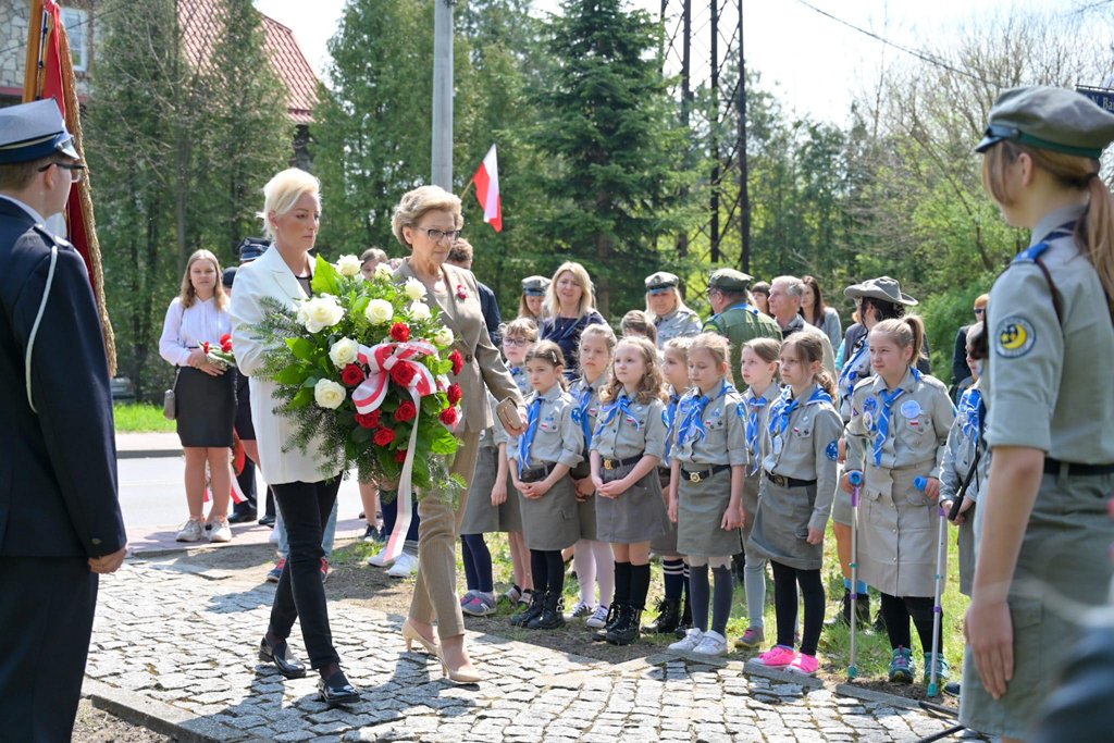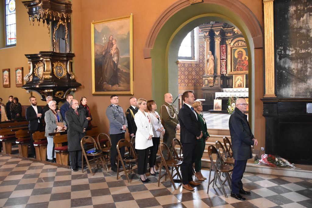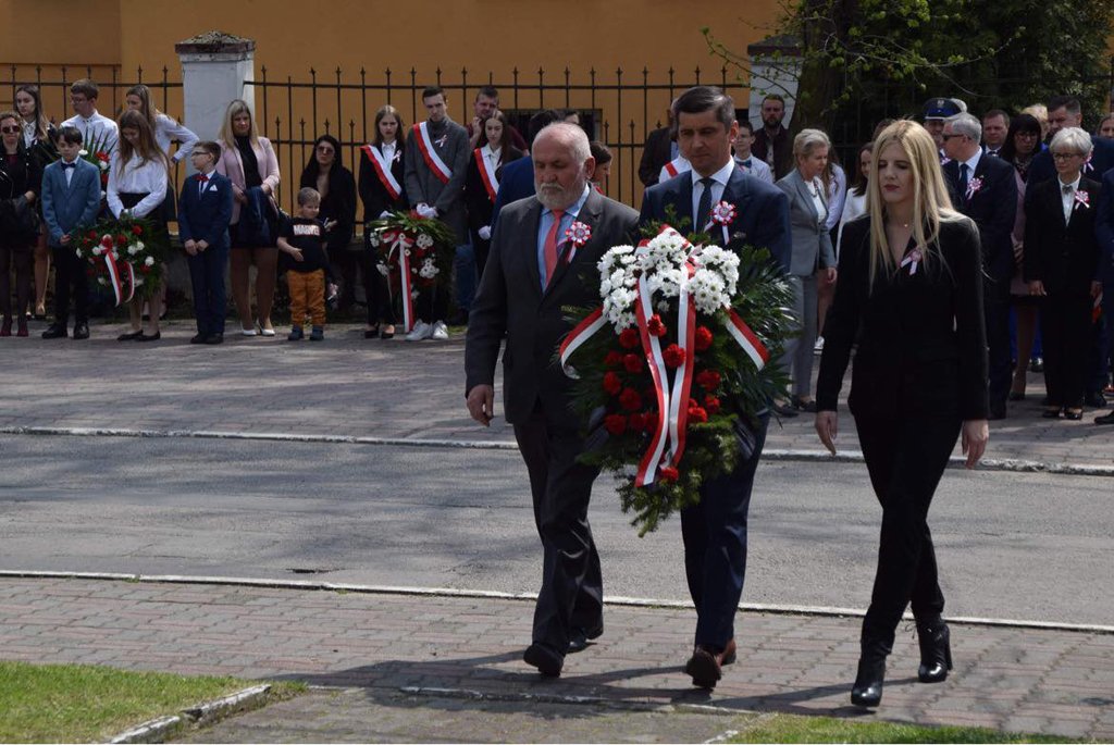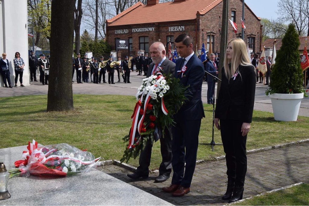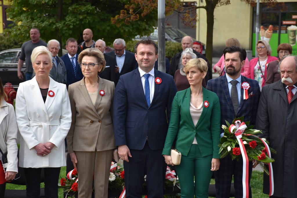 Po mszy nastąpił uroczysty przemarsz na Plac 3 Maja, gdzie pod pomnikiem „Poległym za Wolną Polskę” oraz pod tablicą poświęconą żołnierzom walczącym o wolność na Placu Kardynała Jean-Marie Lustigera w Będzinie, okolicznościowe wieńce złożył Starosta Będziński Sebastian Szaleniec wraz z Członkiem Zarządu Powiatu Będzińskiego Haliną Mentel i Sekretarz Powiatu Agatą Fazan.