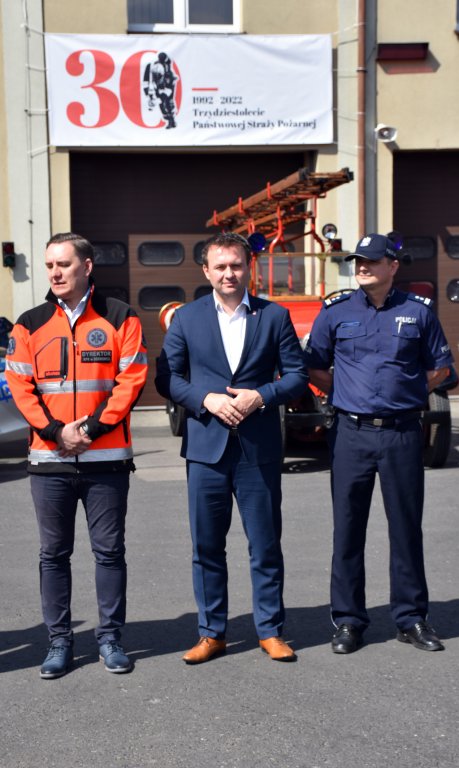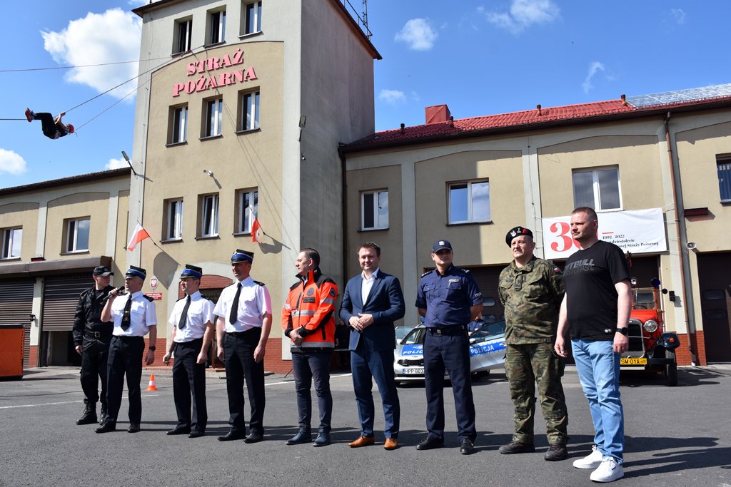 Starosta Będziński Sebastian Szaleniec wraz z Komendantem Powiatowym PSP mł. bryg. Arkadiuszem Sperą przywitali wszystkie zgromadzone dzieci oraz ich opiekunów, zachęcając najmłodszych mieszkańców powiatu do skorzystania z przygotowanych atrakcji. W wydarzeniu uczestniczyli również: Rafał Adamczyk - Poseł na Sejm Rzeczypospolitej Polskiej, ppłk Wojciech Bakalarz - Szef Wojskowego Centrum Rekrutacji w Będzinie, mł. insp. Paweł Fryc - Zastępca Komendanta Powiatowego Policji oraz dr hab. n. med. i n. o zdr. Klaudiusz Nadolny – Dyrektor SP ZOZ Rejonowego Pogotowia Ratunkowego w Sosnowcu.