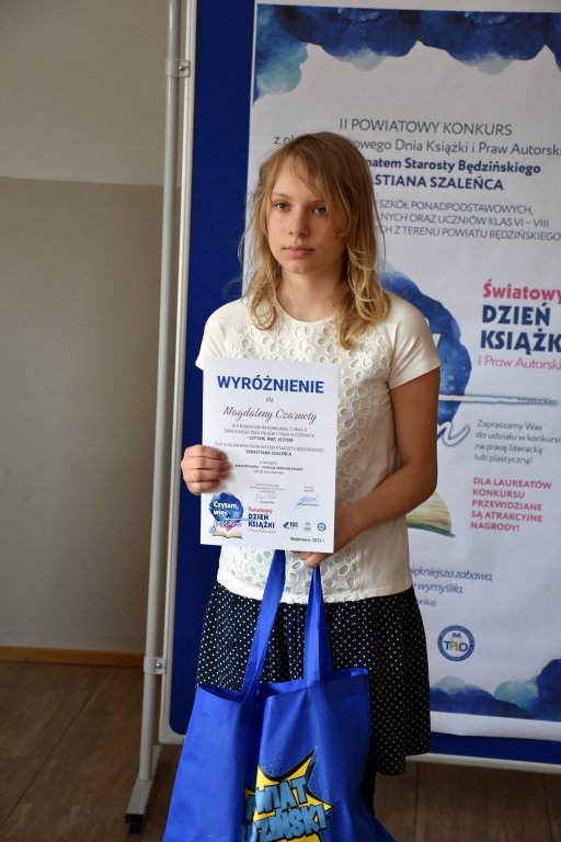 - Światowy Dzień Książki i Praw Autorskich jest doskonałą okazją do promowania czytelnictwa oraz zwrócenie uwagi na ochronę własności intelektualnej. Święto miłośników czytania można celebrować, nie tylko kupując książki, ale i biorąc udział w związanych z nim wydarzeniach, a takim wydarzeniem był niewątpliwie Powiatowy Konkurs. Wszystkim laureatom konkursu, ich rodzicom i nauczycielom gratuluję i dziękuję za zaangażowanie i poświęcony czas, życząc dalszych sukcesów – powiedział Starosta.