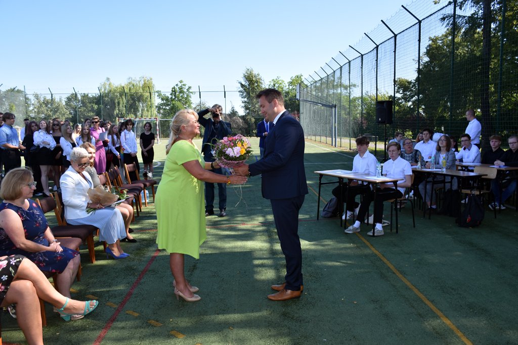 Tego dnia w imieniu Starosty Będzińskiego wszystkim uczniom z Zespołu Szkół Ogólnokształcących i Technicznych im. Jana Pawła II w Siewierzu bezpiecznych i udanych wakacji życzyli: Wicestarosta Będziński Dariusz Waluszczyk wraz z Wiceprzewodniczącym Rady Powiatu Będzińskiego Janem Muchą i Radną Rady Powiatu Będzińskiego Moniką Pawłowską-Dyszy. Wyrazy uznania dla nauczycieli za trud włożony w nauczanie i wychowywanie młodego pokolenia przekazał nauczycielom i uczniom z III LO im. C.K. Norwida oraz Centrum Kształcenia Zawodowego i Ustawicznego w Będzinie reprezentujący Starostę - Etatowy Członek Zarządu Powiatu Będzińskiego - Adam Szydłowski.