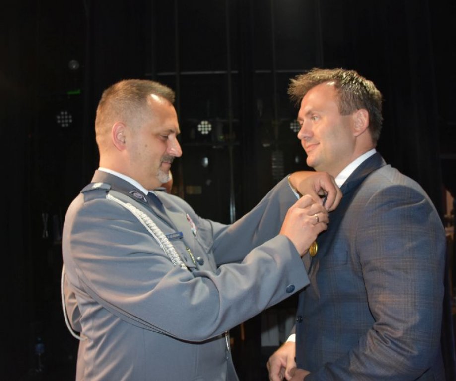 W trakcie dzisiejszej uroczystości Starosta Będziński Sebastian Szaleniec został uhonorowany odznaczeniem przez Niezależny Samorządny Związek Zawodowy Policjantów. Medal wraz z odznaczeniem otrzymał również Naczelnik Zarządzania Bezpieczeństwem Kamil Curyło, a wręczył je Przewodniczący Zarządu NSZZP w Katowicach Michał Szczęśniak