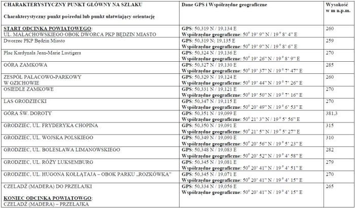 Będzin – Grodziec – Przełajka – Dąbrówka Wielka – Brzeziny Śląskie – Bytom – Piekary Śląskie – Kozłowa Góra – Tarnowskie Góry – Repty Śląskie – Wieszowa – Mikulczyce – Szarsza – Gliwice – Żernica – Nieborowice – Pilchowice – Rudy – Leśniczówka Wielka – Nędza – rezerwat Łężczok – Markowice – Brzezie – Racibórz – Żerdziny – Pietrowice Wielkie – Pietraszyn – Krzanowice