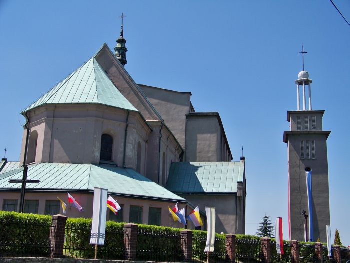W roku 1736 proboszcz grodziecki Wojciech Ciołkiewicz rozpoczął budowę kościoła murowanego, który przetrwał do naszych czasów. Został on w roku 1744 konsekrowany przez biskupa sufragana krakowskiego Michała Kuźnieckiego. W roku 1931 ksiądz proboszcz Stanisław Bilski przystąpił do rozbudowy kościoła tak, że dotychczasowa nawa została zamieniona na prezbiterium, ponadto dobudowano nawę i dwie kaplice. We wnętrzu na uwagę zasługuje barokowe wyposażenie prezbiterium i kaplic, młodopolskie witraże oraz charakterystyczne dla stylu Art déco klasycyzujące zgeometryzowanie form ołtarzy i ambony oraz Drogi Krzyżowej. Ponadto warte zauważenia są współczesne malowidła nawy głównej, autorstwa Elżbiety i Aleksandra Kozerów. Świątynię można zwiedzać przed oraz po każdych nabożeństwach i mszach świętych odprawianych w kościele.