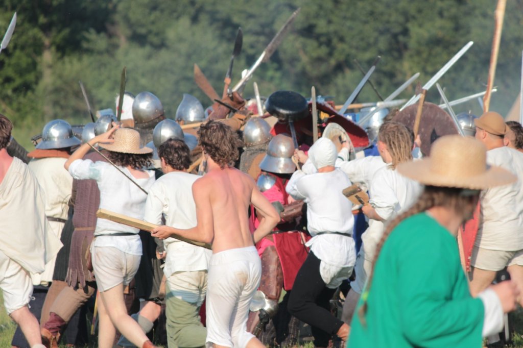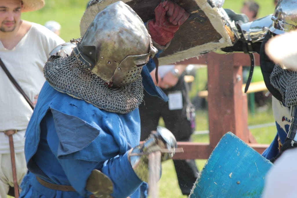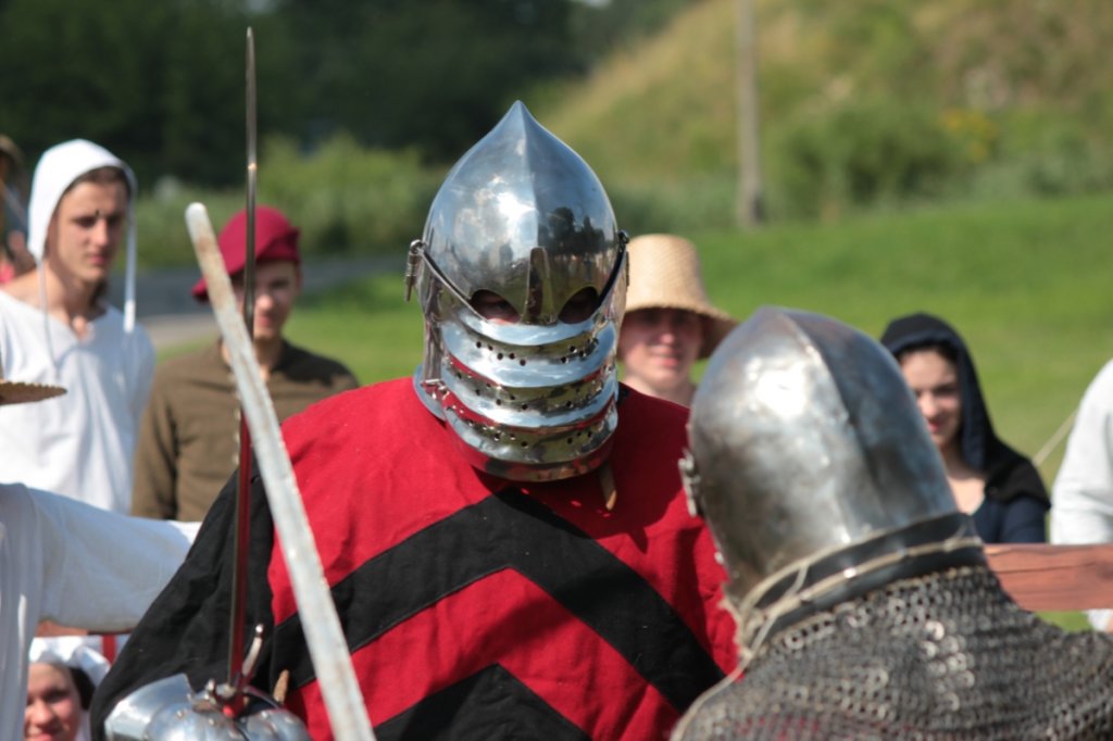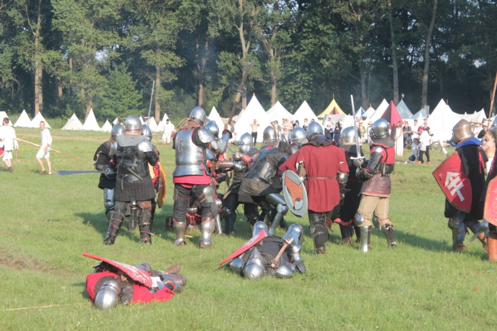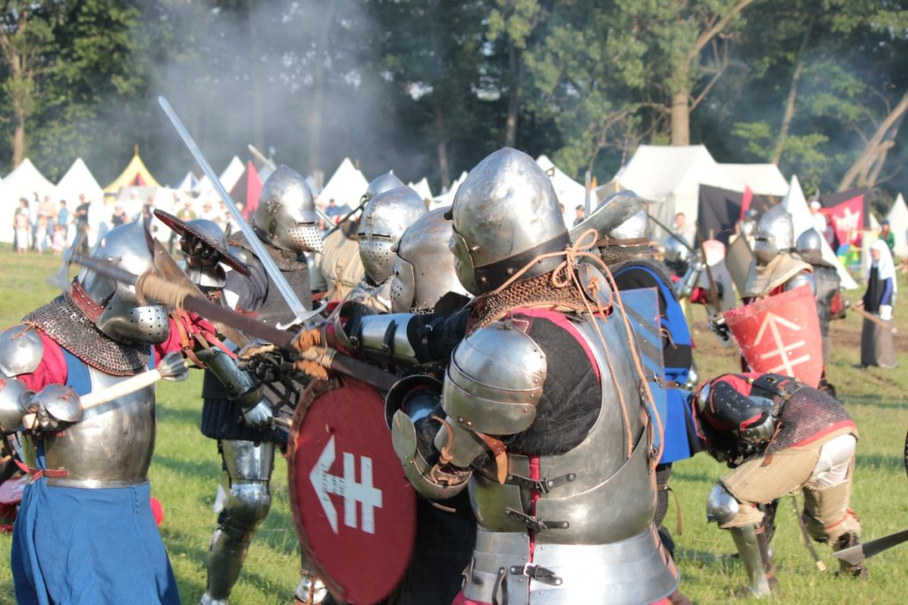 Przed bitwą, niejako na rozgrzewkę, potykali się rycerze. Walki 1 na 1, trzech na trzech, z wykorzystaniem mieczów półtora ręcznych, w formule full-contact przyciągnęły swoją efektywnością liczną widownię.