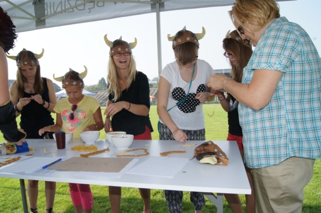 Wszystkie grupy musiały się również wykazać duża wiedzą ogólną o świecie. W każdym kraju czekał bowiem na nich komplet pytań związanych z historią, geografią i ciekawostkami z danego kraju. W Grecji, która kojarzy nam się ze słońcem i wypoczynkiem uczestnicy mieli za zadanie przygotować prezentację własnego kraju oraz projekt budowli. Tutaj również czekał na nich poczęstunek w formie ciasta z cukierni Tkacz. Na koniec uczestnicy przy pomocy materiałów biurowych, kartonów i styropianu, ufundowanego przez firmę budowlaną Bizarre Rafał Kubicz, rozpoczęli budowę charakterystycznych budowli. Pod koniec każdy kapitan przedstawił swój kraj i swoje dzieło. Tu również pomysłowość uczestników nie znała granic.