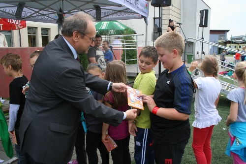 Dla najmłodszych przygotowano konkursy i pokazy, w trakcie których przypominano najważniejsze zasady prawidłowego poruszania się po drogach. Dzieciom towarzyszyły policyjne maskotki - Sznupek i Klara, a także maskotka Będzina - rycerz Przemko.