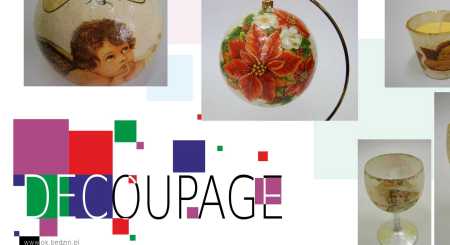 Entuzjastów tej fascynującej sztuki zdobniczej stale przybywa, powstają też coraz to nowsze strony internetowe poświęcone tej tematyce. Nie trzeba mieć specjalnych zdolności, aby stworzyć swój własny oryginalny przedmiot. Takich na pewno nie zabraknie podczas zajęć z decoupagu zorganizowanych w Ośrodku Kultury. Pierwsze z nich już 26 listopada, gdzie będzie można przygotować piękne prezenty gwiazdkowe, następne 10 grudnia, których tematem będą ozdoby świąteczne. Koszt: 40 zł.
