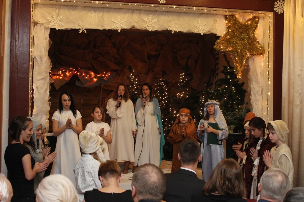 W pierwszej części uroczystego spotkania na zaproszonych gości czekała niespodzianka, przygotowana przez wychowanków. Było nią pięknie wykonane przedstawienie słowno – muzyczne, dotyczące oczywiście Bożego Narodzenia. Oprócz młodych artystów, na scenie wystąpił również zespół Sarmatia Ars Bendziniensis.