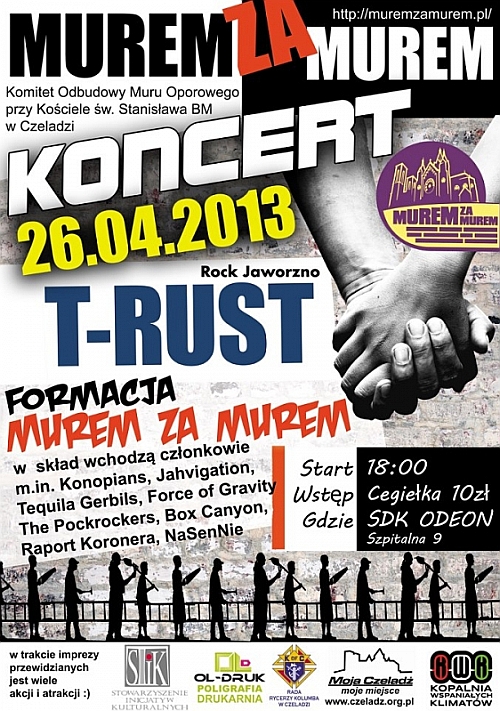 Społeczny Komitet "Murem za murem" rozpoczął przedsprzedaż biletów wstępu na koncert charytatywny, który odbędzie się 26 kwietnia 2013 r. o godz. 18:00 w SDK "Odeon" w Czeladzi.