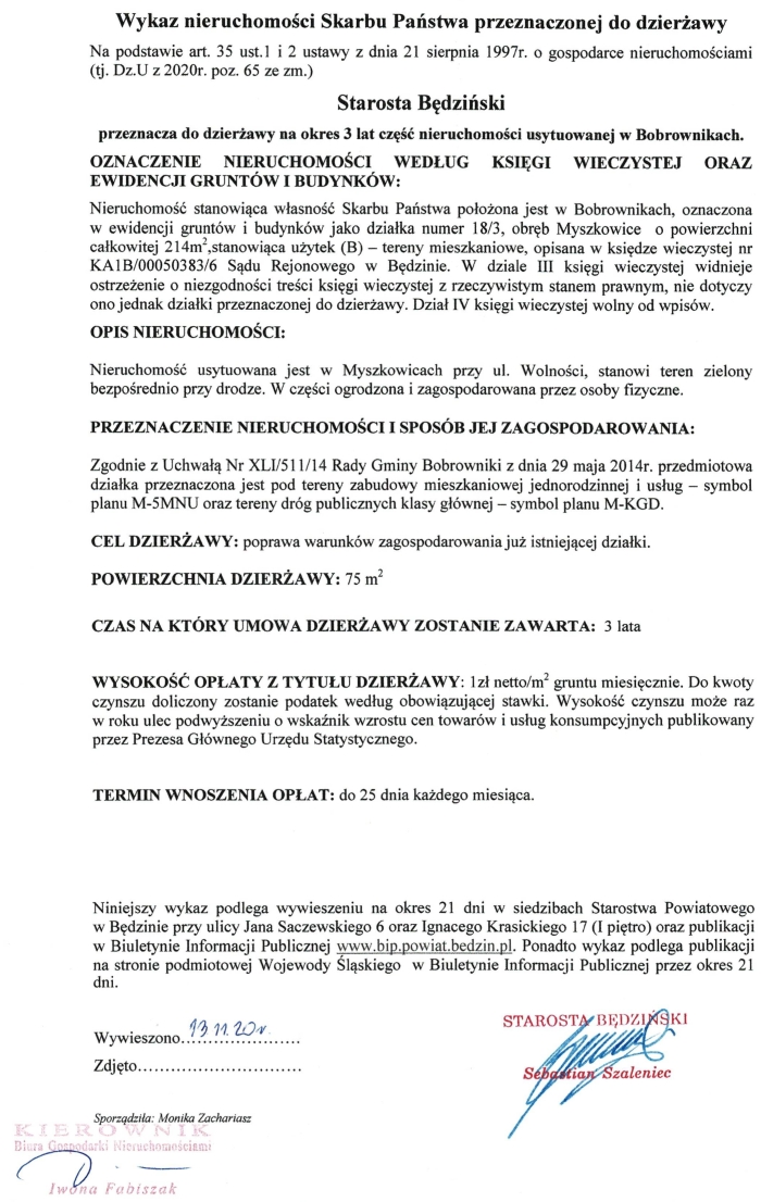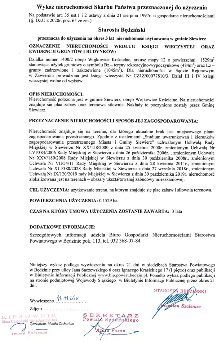 Wywieszono: 13.11.2020 r.
