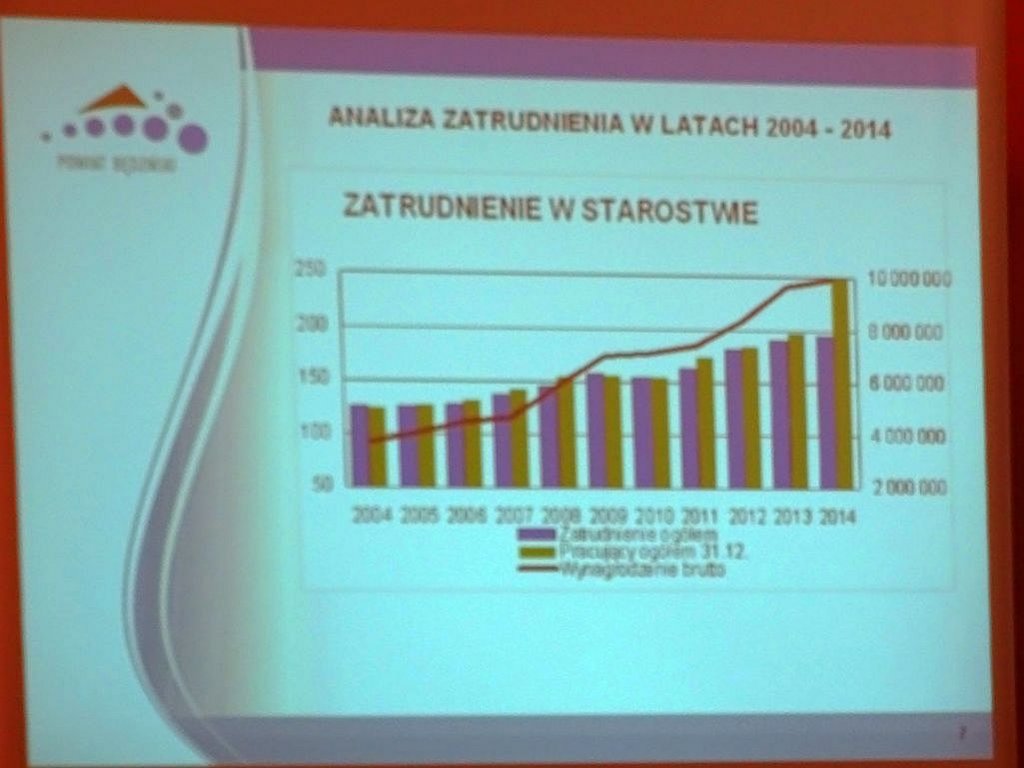Następnie w swoje „branżowe” zagadnienia szczegółowo wprowadzali: wicestarosta Emil Bystrowski (komunikacja, architektura, geodezja, środowisko i leśnictwo), a także członkowie zarządu Robert Szpinda (ochrona zdrowia i oświata) i Marek Mrozowski (kadry, inwestycje i rozwój, PUP, PZD). Na temat stanu finansów powiatu swoją wiedzą podzielił się skarbnik powiatu Tomasz Zydek. Powiedział m.in., że dochody na koniec 2014r. zamknęły się kwotą 108,59 mln zł, podczas gdy wydatki kwotą 115,87 mln zł. Zobowiązania na koniec 2014r. zamknęły się kwotą 8,79 mln zł. Niepokojący jest wysoki wzrost zatrudnienia, a przez to również kosztów osobowych.