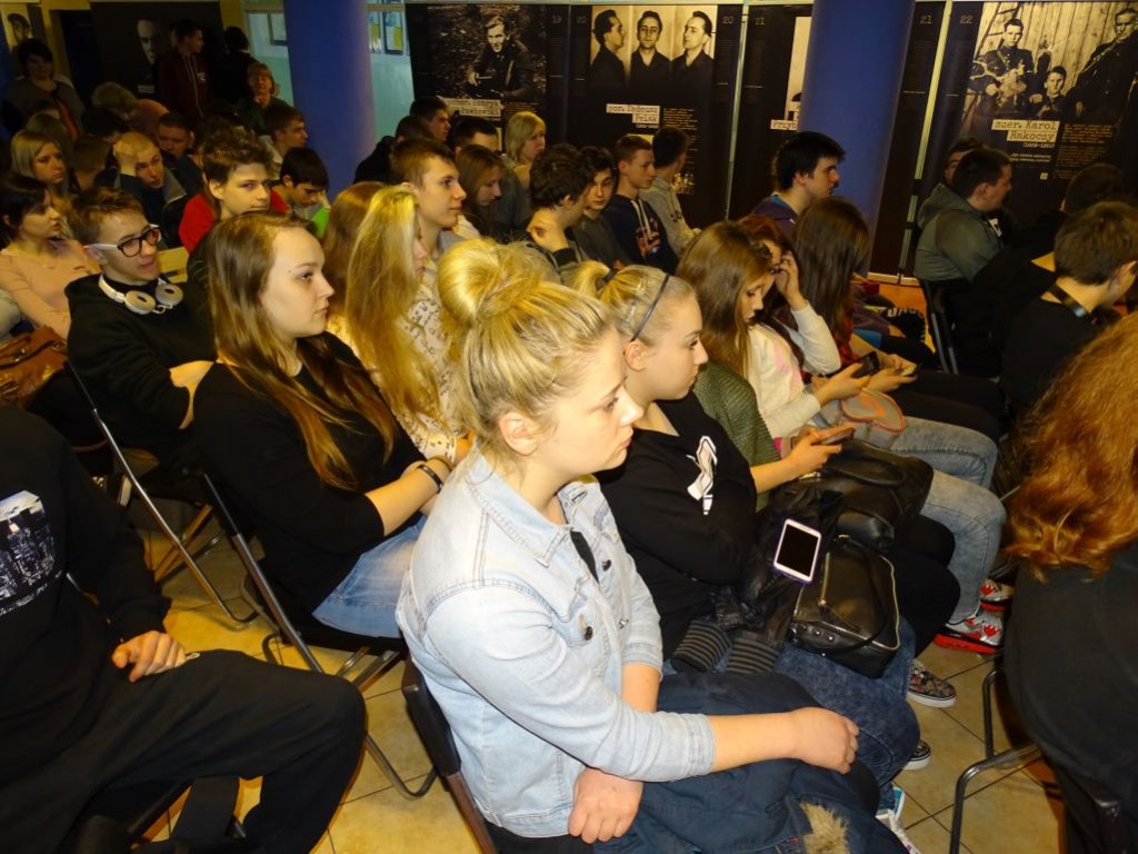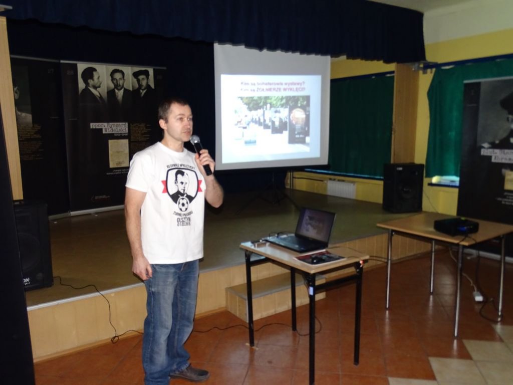 Tematykę wystawy przybliżył uczniom Pan Mariusz Solecki, pasjonat historii najnowszej, autor książek poświęconych Żołnierzom Wyklętym. Wykład połączony był z prezentacją multimedialną.
