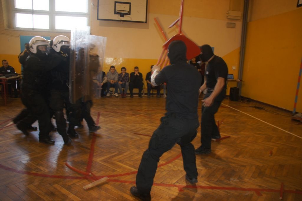 Druga część Dni Otwartych odbyła się z nieocenionym wsparciem i udziałem instytucji współpracujących ze szkołą w ramach kierunków mundurowych: Komendy Powiatowej Policji w Będzinie, Szkoły Policji w Katowicach, grupy interwencyjnej Służby Więziennej, przedstawicieli I Śląsko- Dąbrowskiego Korpusu Airsoftowego DUCHY, zespołu dyplomowanych ratowników medycznych, ratownika WOPR – pana Arkadiusza Baranowskiego oraz sekcji nurkowej z panem Rafałem Konarskim.