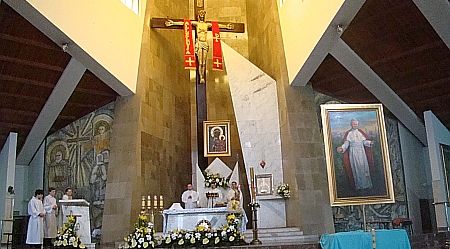 Dzięki staraniom ks. Gibały w murach górnej części kościoła został umieszczony kamień węgielny z grobu świętego Piotra w Rzymie ofiarowany przez papieża Jana Pawła II. 24 maja 1997 roku pierwszy ordynariusz diecezji sosnowieckiej ksiądz bp. Adam Śmigielski ustanowił będziński kościół Sanktuarium Polskiej Golgoty Wschodu.