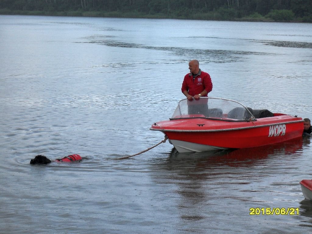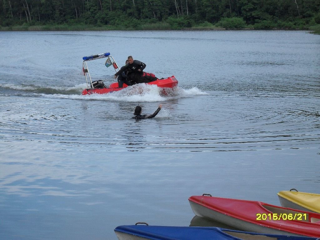 Radość z pozyskania nowego sprzętu spowodowała, że ratownikom pełniącym rolę pozorantów w wodzie nie przeszkadzał chłód i brzydka pogoda. Dużym zaangażowaniem w pokazy wykazały się też psy ratownicze.