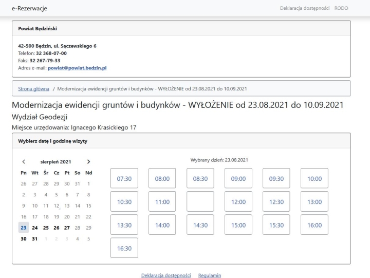 Od dziś można rezerwować wizyty w Starostwie Powiatowym w Będzinie przez internet. Na razie taką usługę oferuje Wydział Geodezji. Kolejne komórki obsługujące klientów będą dodawane na bieżąco.