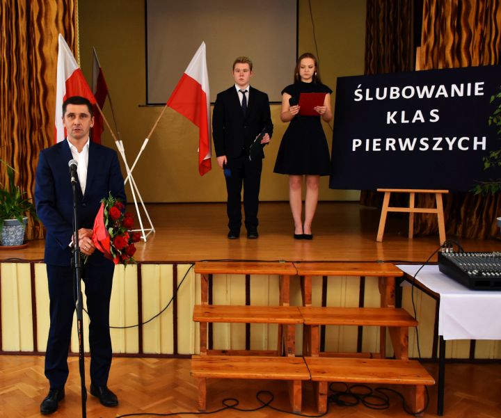 Oficjalnego rozpoczęcia uroczystości w imieniu Starosty Będzińskiego Sebastiana Szaleńca dokonał Wicestarosta Dariusz Waluszczyk, który życzył wszystkim pierwszoklasistom sukcesów w nauce, wytrwałości, zapału oraz zaangażowania w realizację obranych celów.