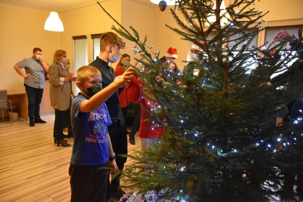 Mikołajkowy nastrój dopełniło dziś wspólne strojenie choinki przez podopiecznych wspomaganych przez Ośrodek Wspierania Dziecka i Rodziny w Będzinie. W ubieraniu drzewka dzieciom pomagali Starosta Sebastian Szaleniec, Wicestarosta Dariusz Waluszczyk i Członek Zarządu Powiatu Adam Szydłowski. Wszelkie wykorzystane ozdoby własnoręcznie wykonały dzieci z rodzin wspieranych przez OWDiR. Nie mogło zabraknąć upominków i świątecznych życzeń.