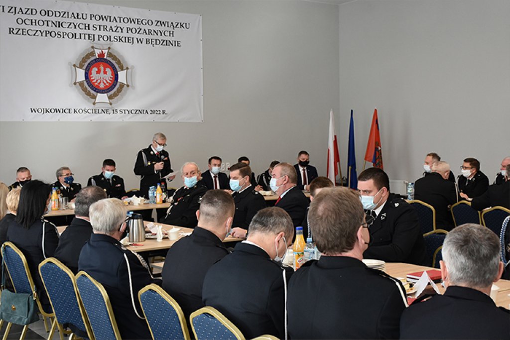 W sobotę 15 stycznia w Remizie Ochotniczej Straży Pożarnej w Wojkowicach Kościelnych odbył się VI Zjazd Oddziału Powiatowego Związku Ochotniczych Straży Pożarnych Rzeczpospolitej Polskiej w Będzinie. W zebraniu z ramienia Powiatu Będzińskiego udział wzięli Starosta Będziński Sebastian Szaleniec wraz z Wicestarostą Dariuszem Waluszczykiem.