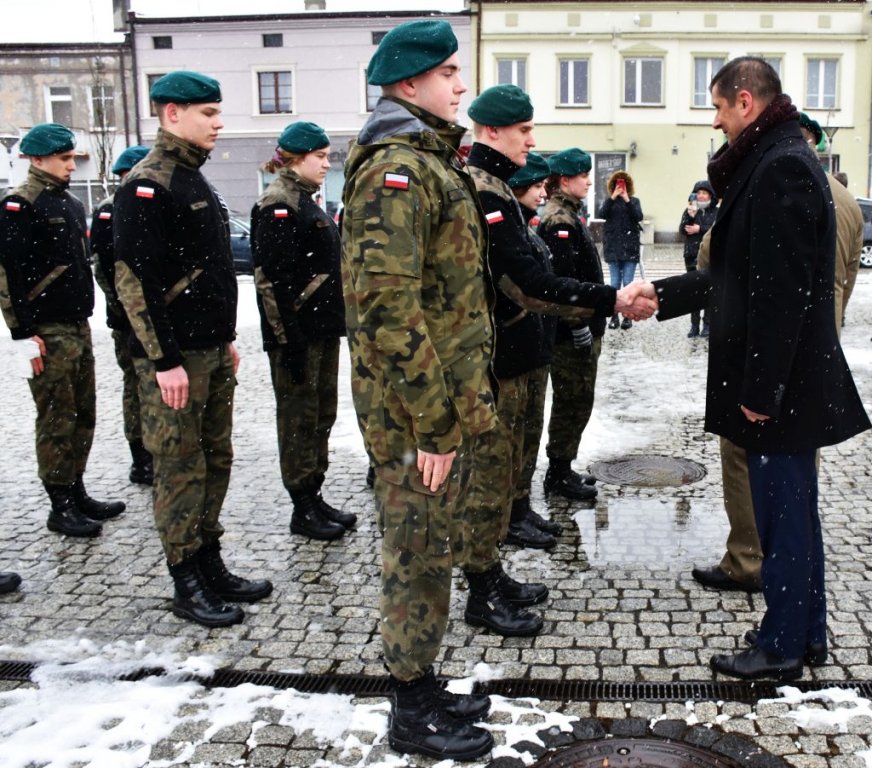 W piątek 1 kwietnia na Rynku im. Stefana Wyszyńskiego w Czeladzi odbyło się ślubowanie uczniów klas pierwszych o profilu mundurowym Zespołu Szkół Ogólnokształcących i Technicznych. Podczas uroczystości Starostę Będzińskiego Sebastiana Szaleńca reprezentowali Wicestarosta Będziński Dariusz Waluszczyk oraz Przewodniczący Rady Powiatu Jan Powałka. W uroczystości uczestniczyli również Burmistrz Miasta Czeladź Zbigniew Szaleniec wraz z Zastępcą ds. społecznych Beatą Zawiłą, oraz Wojskowy Komendant Uzupełnień w Będzinie ppkł Wojciech Bakalarz wraz z Zastępcą mjr Jackiem Łukasikiem.