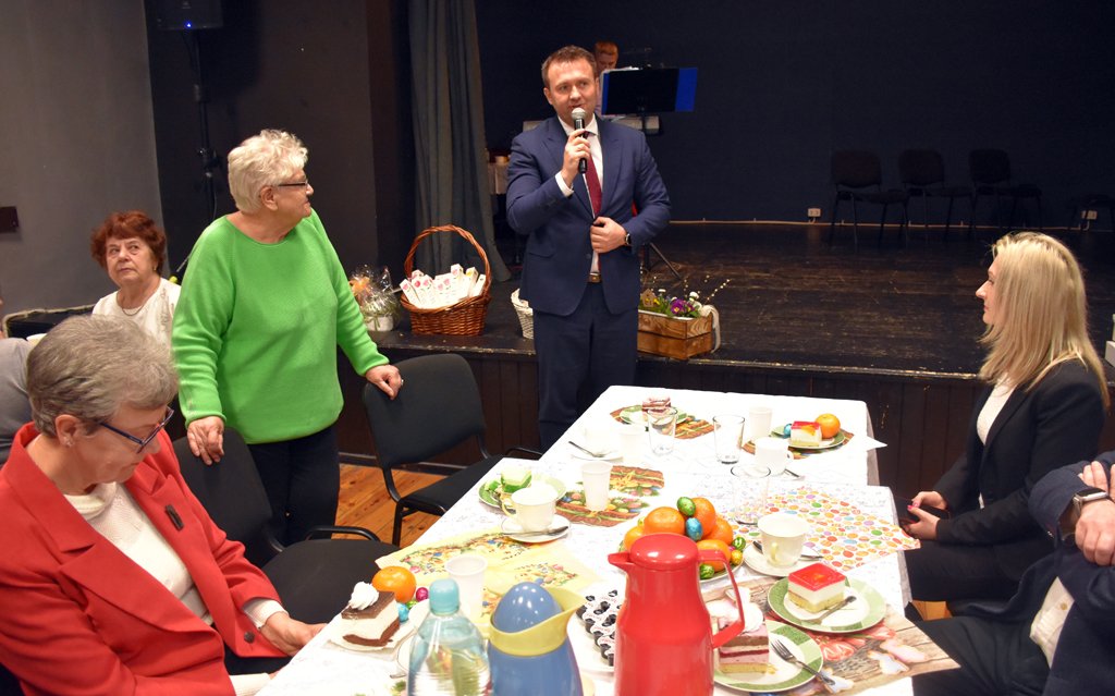 W dniu dzisiejszym w Ośrodku Kultury w Będzinie miało miejsce wyjątkowe spotkanie. Z okazji zbliżających się Świąt Wielkanocnych zebrali się członkowie Polskiego Związku Emerytów, Rencistów i Inwalidów z Oddziału Będzin, na czele z Przewodniczącą Grażyną Stojek. Wśród obecnych nie mogło zabraknąć Starosty Będzińskiego Sebastiana Szaleńca, Prezydenta Miasta Będzina Łukasza Komoniewskiego oraz w imieniu Posła na Sejm RP Rafała Adamczyka – Joanny Kobryń.