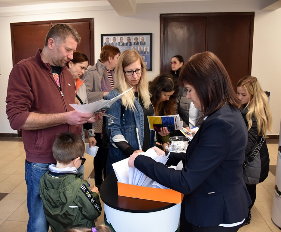Dzisiaj w Sali Sesyjnej odbyły się polsko-ukraińskie Targi Pracy pn „Praca bez Granic”, w których uczestniczyli mieszkańcy powiatu i uchodźcy z Ukrainy. Wszystkie osoby zainteresowane znalezieniem zatrudnienia przywitał Starosta Będziński Sebastian Szaleniec wraz z Dyrektorem Powiatowego Urzędu Pracy Wojciechem Olesińskim. W wydarzeniu uczestniczyli: Przewodniczący Rady Powiatu Jan Powałka, Wicestarosta Dariusz Waluszczyk, Członek Zarządu Halina Mentel i Sekretarz Powiatu Agata Fazan. Na wszystkich uczestników czekały oferty pracy przygotowane zarówno w języku polskim jak i ukraińskim. Dostępna była również pomoc tłumacza. Można było skorzystać także z usług doradców zawodowych czy porad ekspertów.