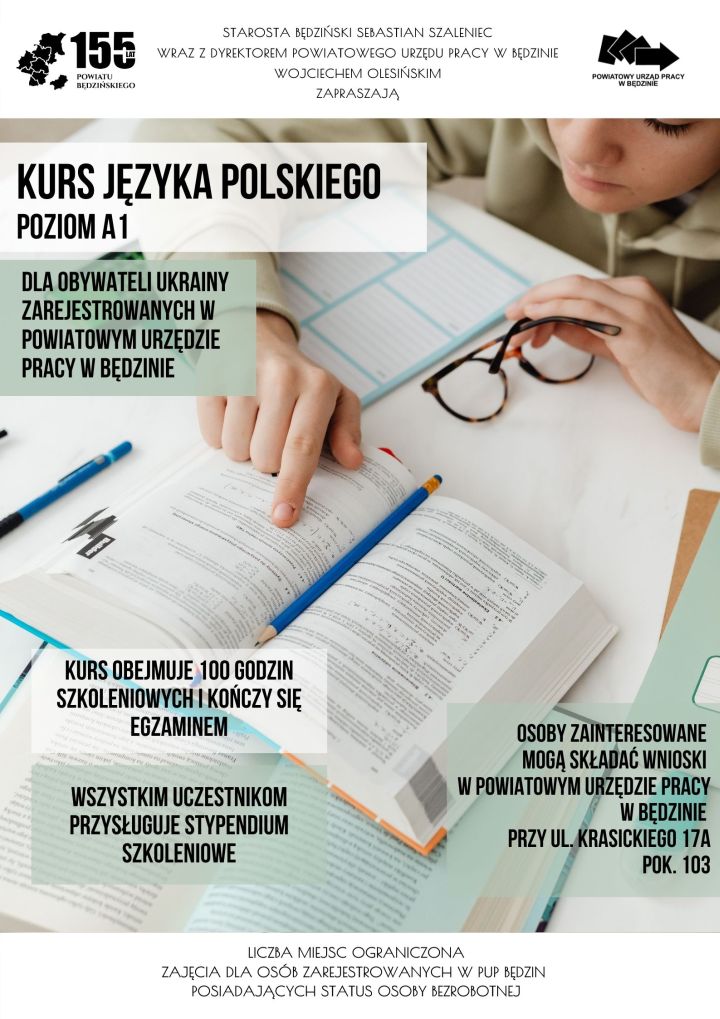 Голова Районної Ради м. Бендзіна Себастіан Шаленець разом з директором Районного Центру Зайнятості в Бендзіні Войцехом Олесінським щиро запрошують громадян України, зареєстрованих в PUP Będzin як безробітних, на курси польської мови на рівні А1