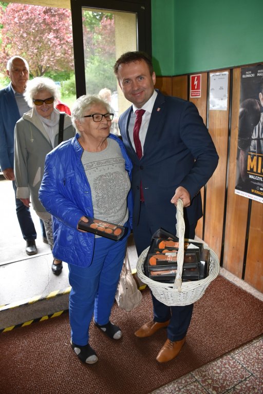Dzisiejszy dzień był doskonałą okazją do wyrażenia wdzięczności wszystkim mamom z naszego Powiatu, które zostały zaproszone przez Starostę Będzińskiego Sebastiana Szaleńca na filmowe popołudnie do będzińskiego kina „Nowość”, gdzie odbył się seans filmowy kultowej, polskiej komedii „Koniec świata czyli Kogel Mogel 4”. Przed seansem wszystkie Panie zostały obdarowane symbolicznym upominkiem w postaci zestawu pachnących świeczek dla umilenia tego wyjątkowego i pięknego święta. Przybyłe Panie witał również Etatowy Członek Zarządu Powiatu - Adam Szydłowski.