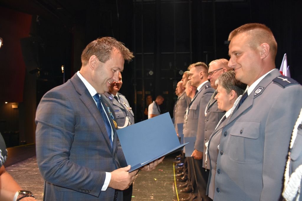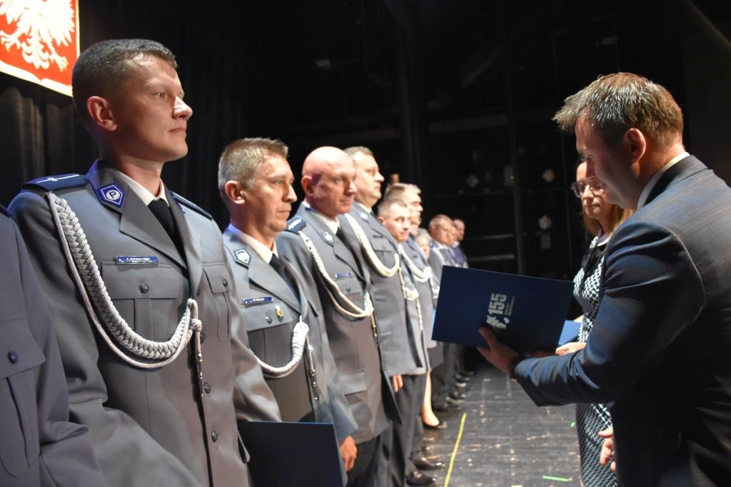 Dnia 7 lipca, w Teatrze Dzieci Zagłębia im. Jana Dormana w Będzinie, odbyły się uroczyste obchody Święta Policji. Była to doskonała okazja, aby wyrazić wdzięczność wszystkim wyróżniającym się funkcjonariuszom Komendy Powiatowej Policji w Będzinie. Zaproszonych gości powitał Komendant Powiatowy Policji w Będzinie insp. Arkadiusz Więcek. Następnie Starosta Będziński Sebastian Szaleniec wraz z Przewodniczącym Rady Powiatu Będzińskiego Janem Powałką, podziękowali funkcjonariuszom za ofiarną służbę, gratulując sukcesów i wszelkich osiągnięć, wręczając listy gratulacyjne.