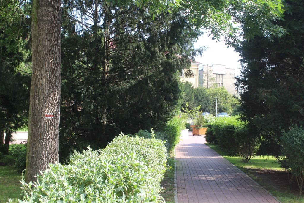Kolejny fragment szlaku, na którym się znajdujemy przynosi nam wytchnienie od zgiełku ulicy. Podczas naszego spaceru po parku z łatwością odnajdziemy oznaczenia, znajdujące się na drzewach, kierujące nas do bramy wyjściowej.