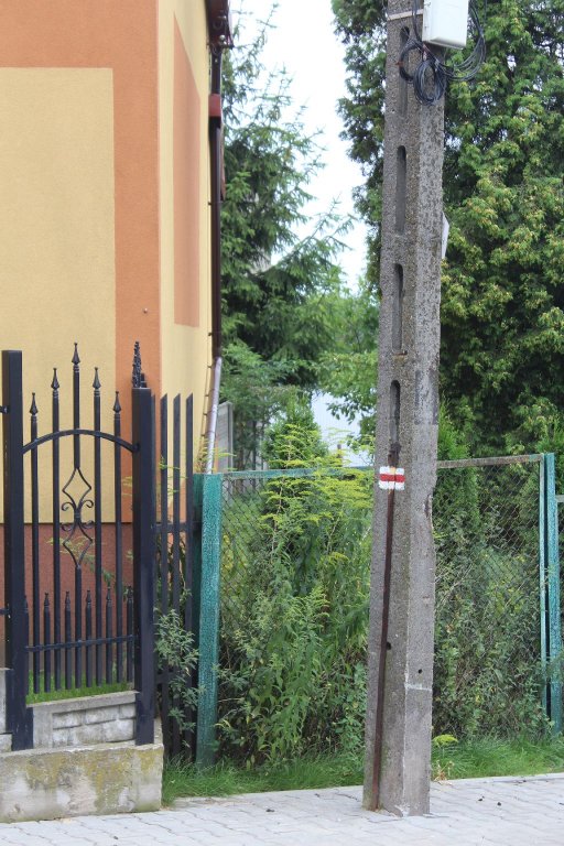 Idziemy wzdłuż ogrodzenia, w stronę kościoła pw. św. Jadwigi Śląskiej na osiedlu Zamkowym. Mijając kościół, znajdujący się nieco dalej, wchodzimy w osiedle. Idziemy ulicą Bursztynową, w stronę Miejskiego Zespołu Szkół nr 1. Mijamy szkołę, idziemy w stronę przejścia dla pieszych przez ul. Wolności. Szlak prowadzi ulicą Wolności w kierunku Lasu Grodzieckiego.