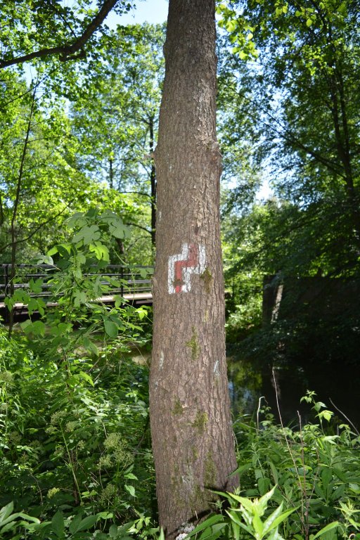 W powiecie szlak rozpoczyna się w Sławkowie, przy Rynku. Skręca przy karczmie Austeria (z XVIII w.), wpisanej do rejestru zabytków województwa śląskiego, w stronę Małego Rynku i ulicy Kościelnej. Prowadzi do kościoła pw. Podwyższenia Krzyża Świętego oraz św. Mikołaja, również znajdującego się w rejestrze zabytków. Ostateczny, dzisiejszy kształt kościół uzyskał po przebudowach z końca XVIII i początkach XIX wieku. Mija kościół, skręca w prawo w dół ulicy Legionów Polskich. Kieruje się ulicą Jagiellońską w stronę kładki dla pieszych nad DK 94, następnie ulicą Matejki. Następnie szlak biegnie wzdłuż Białej Przemszy (ulica Niwka), a także przez kładkę nad rzeką, prowadzącą obok tzw. Basenu. Uwaga, szlak skręca za kładką w lewo! Następnie ulicą Fabryczną, wzdłuż Białej Przemszy, terenem wbrew nazwie zielonym, dochodzimy do granicy z Dąbrową Górniczą. Chwaliboskie to ostatni punkt w powiecie będzińskim. Zachęcamy jednak mieszkańców powiatu do skierowania się szlakiem w kierunku Zawiercia, gdzie z pewnością nie zabraknie pięknych terenów i przyjemnych okolic.