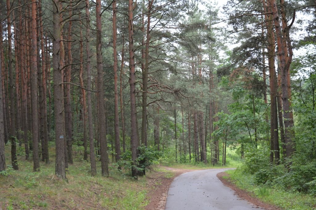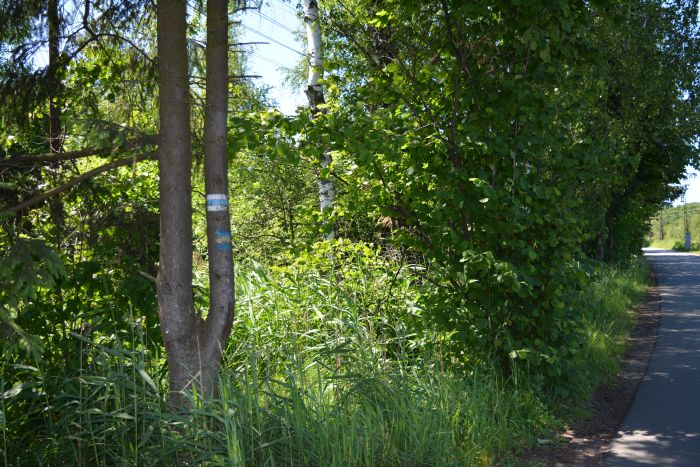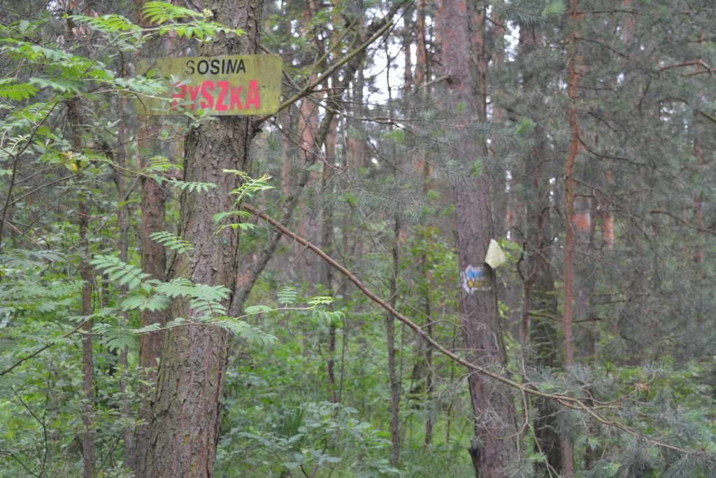 Szlak prowadzi w stronę cmentarza, następnie w lewo ulicą Obrońców Westerplatte, aż do torów kolejowych. Kolejnym charakterystycznym obiektem jest zniszczony i zdewastowany budynek dworca kolejowego. Prowadzi wzdłuż torów kolejowych w stronę przejazdu kolejowego, przekracza go, a następnie skręca w prawo w ulicę Zagródki, biegnącą wzdłuż torów kolejowych. W tym miejscu szlak jest bardzo słabo widoczny, w wielu miejscach drogę trzeba wybierać intuicyjnie. Uwaga! Istnieje tu ryzyko błędnego odczytania zniszczonego znaku i skierowania się prosto, w stronę domków jednorodzinnych (ulica Świerkowa, Konarowa, Jałowcowa).
