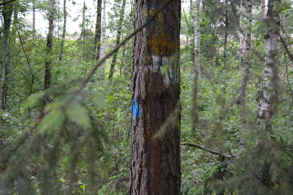 Prawidłowo szlak skręca w prawo i prowadzi lasem aż do Szkolnego Schroniska Młodzieżowego przy ulicy Niwa. Schronisko jest doskonałym punktem wypadowym do zwiedzania nie tylko powiatu będzińskiego, ale również Jury Krakowsko-Częstochowskiej. Szlak biegnie lasem wzdłuż torów kolejowych, natomiast po wyjściu z lasu, skręca w lewo, w ulicę Burki, która wiedzie drogą asfaltową w lesie, wśród pięknej przyrody. Po krótkim dystansie przechodzi przez tory kolejowe i dalej, ulicą Burki dochodzi do charakterystycznego skrzyżowania przy przystanku autobusowym. Następnie w lewo – tak jak wskazuje drogowskaz – do Ryszki-Sztoły. Przy skrzyżowaniu z ulicą Piernikarka szlak niebieski łączy się na chwilę z żółtym Szlakiem Pustynnym, aby po kilkuset metrach rozdzielić się z nim i skręcić w prawo, w dół, w stronę Białej Przemszy – na granicy powiatu będzińskiego.